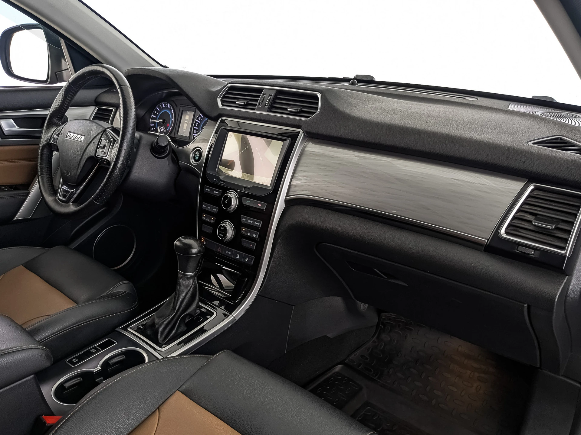 • Чёрно-коричневые сиденья с отделкой из искусственной кожи